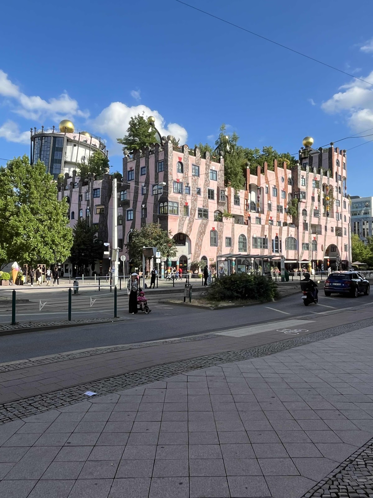 There are a good few historic old buildings knocking around especially churches and the like but my favourite is a place called Hundertwasser Grüne Zitadelle which a fairly big pink building which looks like it was designed by Salvador Dali,The Grimms & Lewis Carroll on an acid trip and the council decided that was the best they were gonna get from them so went with it.It’s glorious and what’s better is there are numerous coffee shops etc inside the inner courtyards…well worth a visit…